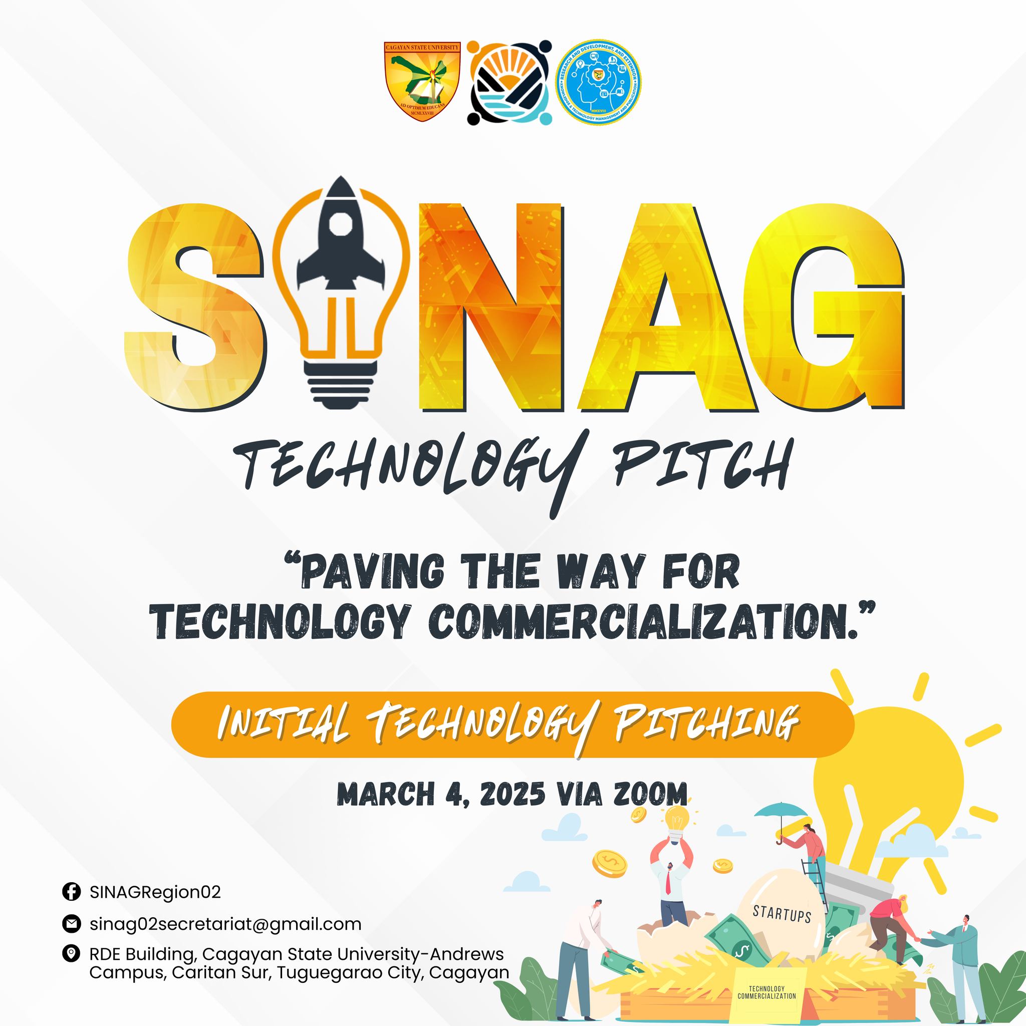 In partnership with the CSU Knowledge & Technology Management and Publication Office (KTMPO), SINAG Cagayan Valley proudly announces the upcoming SINAG Technology Pitch on March 13, 2025, with the theme “Paving the Way for Technology Commercialization.”